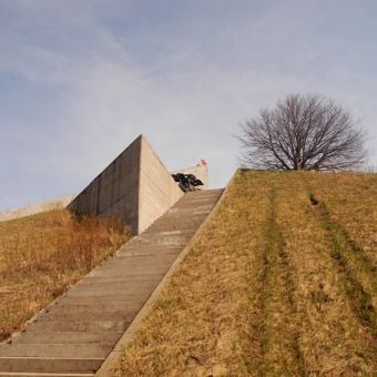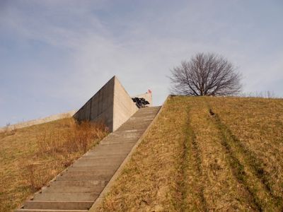 Il monumento Collina della Gloria presenta strutture in pietra ed elementi commemorativi su un terreno elevato nel distretto di Vsevolozhsky dell'Oblast di Leningrado.