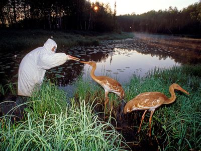 La riserva ospita un centro specializzato per l'allevamento di gru rare, contribuendo alla preservazione della gru bianca siberiana dal 1979.