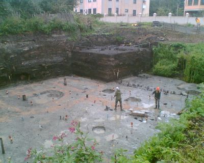 Troitsky dugout, Sito archeologico a Veliky Novgorod, Russia.