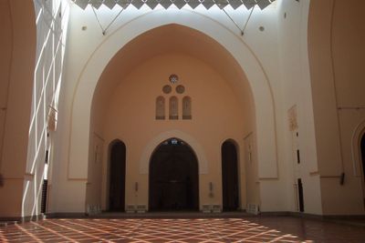 La moschea incorpora elementi architettonici islamici tradizionali attraverso muri portanti, volte e cupole costruite con mattoni cotti vuoti.