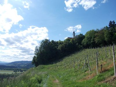 Dalla cima, gli osservatori possono vedere lo Stadio Ljudski vrt e molteplici vedute di Maribor mentre salgono attraverso territori viticoli produttivi.