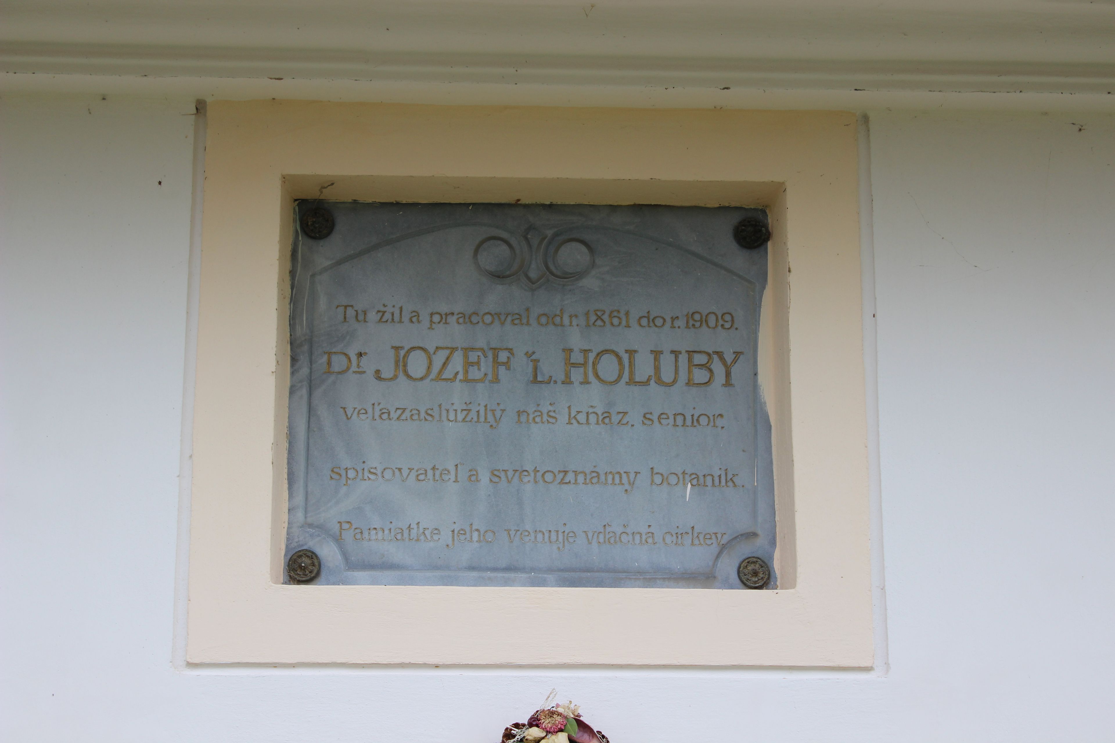 Memorial board of Jozef Ľudovít Holuby in Zemianske Podhradie
