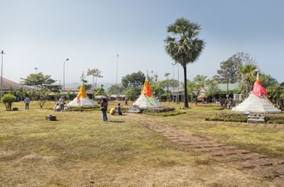 Il ponte Uttamanusorn si estende per 400 metri sul bacino idrico, rappresentando il ponte in legno più lungo della Thailandia, collegando la città ai templi buddisti.