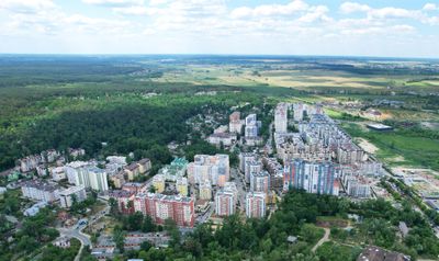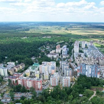 Situata sul fiume Irpin a nord di Kiev, questa comunità residenziale si estende su entrambe le rive con parchi tra gli edifici.