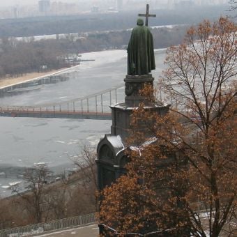 Il Monumento a San Vladimiro è una figura di bronzo su un piedistallo alto a Kiev, Ucraina. La statua mostra il principe che tiene una croce e si erge su una collina che domina il Dnipro.