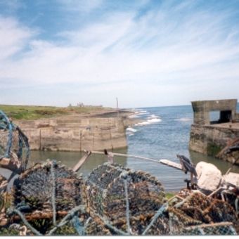 Il porto conserva i resti di silos industriali utilizzati per conservare roccia frantumata dalle cave locali prima del carico sulle navi commerciali.