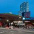 Il Barclays Center, con una capacità di 19.000 posti, presenta un esterno in acciaio marrone con una facciata curva e un oculo sopra l'ingresso.