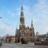 Le fondamenta in calcare sostengono muri in mattoni color crema, mentre tre torri si innalzano dalla struttura con la guglia centrale che raggiunge 60 metri.