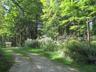I visitatori possono esplorare 21 chilometri di sentieri attraverso tre appezzamenti collegati, con parcheggio su East Street e Quaker Drive.