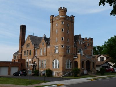 La struttura include merlature sulle torrette est e ovest, da dove gli sceriffi monitoravano le riunioni pubbliche durante le rivolte del latte degli anni 1920.