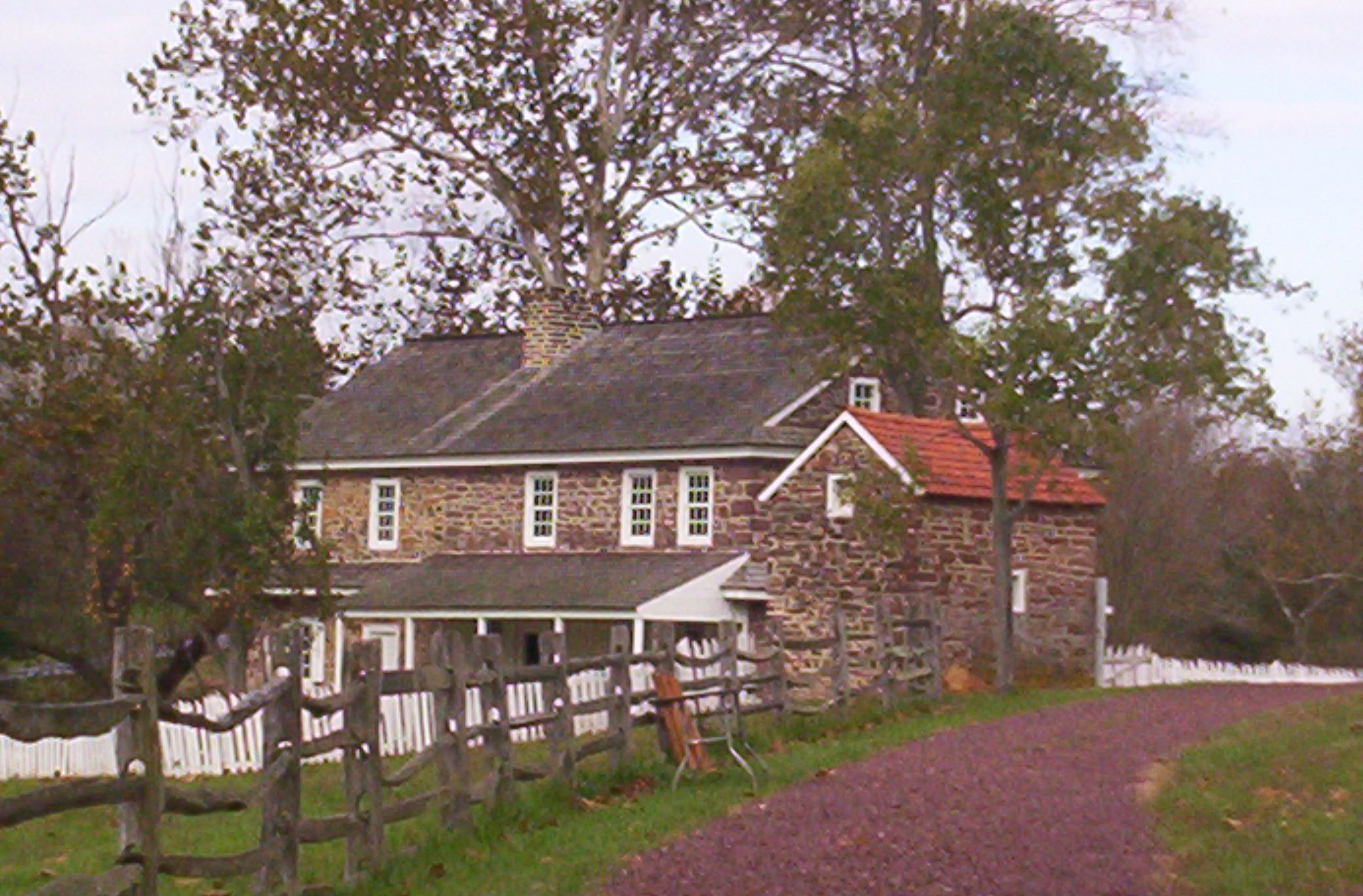 La proprietà include una fucina, una segheria e dimostrazioni di mestieri coloniali che riflettono le attività quotidiane dei coloni tedeschi della Pennsylvania.