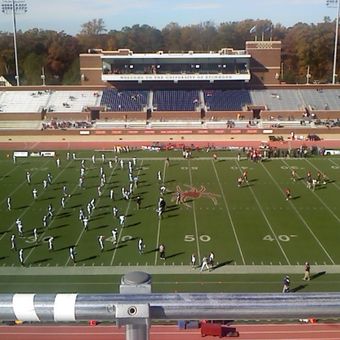 Lo Stadio E. Claiborne Robins presenta tribune su più livelli su entrambi i lati del campo, con moderni display LED nella zona nord.