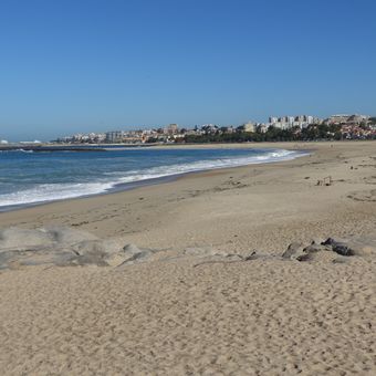 Le dune protette della Riserva Naturale dell'Estuario del Douro costeggiano la spiaggia, creando una barriera naturale con l'entroterra.