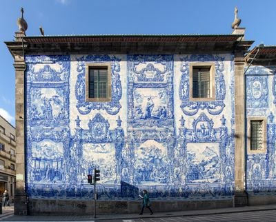 Le pareti esterne della Capela das Almas mostrano 15,947 piastrelle di azulejo blu e bianche che coprono 360 metri quadrati di superficie.
