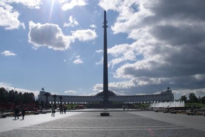 L'obelisco centrale raggiunge 141.8 metri di altezza, con ogni metro che rappresenta un giorno di partecipazione dell'Unione Sovietica nella Seconda Guerra Mondiale.