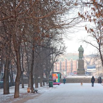 Il Viale Gogolevsky si estende dalla Cattedrale di Cristo Salvatore fino a Piazza Arbat, con viali alberati e architettura classica.