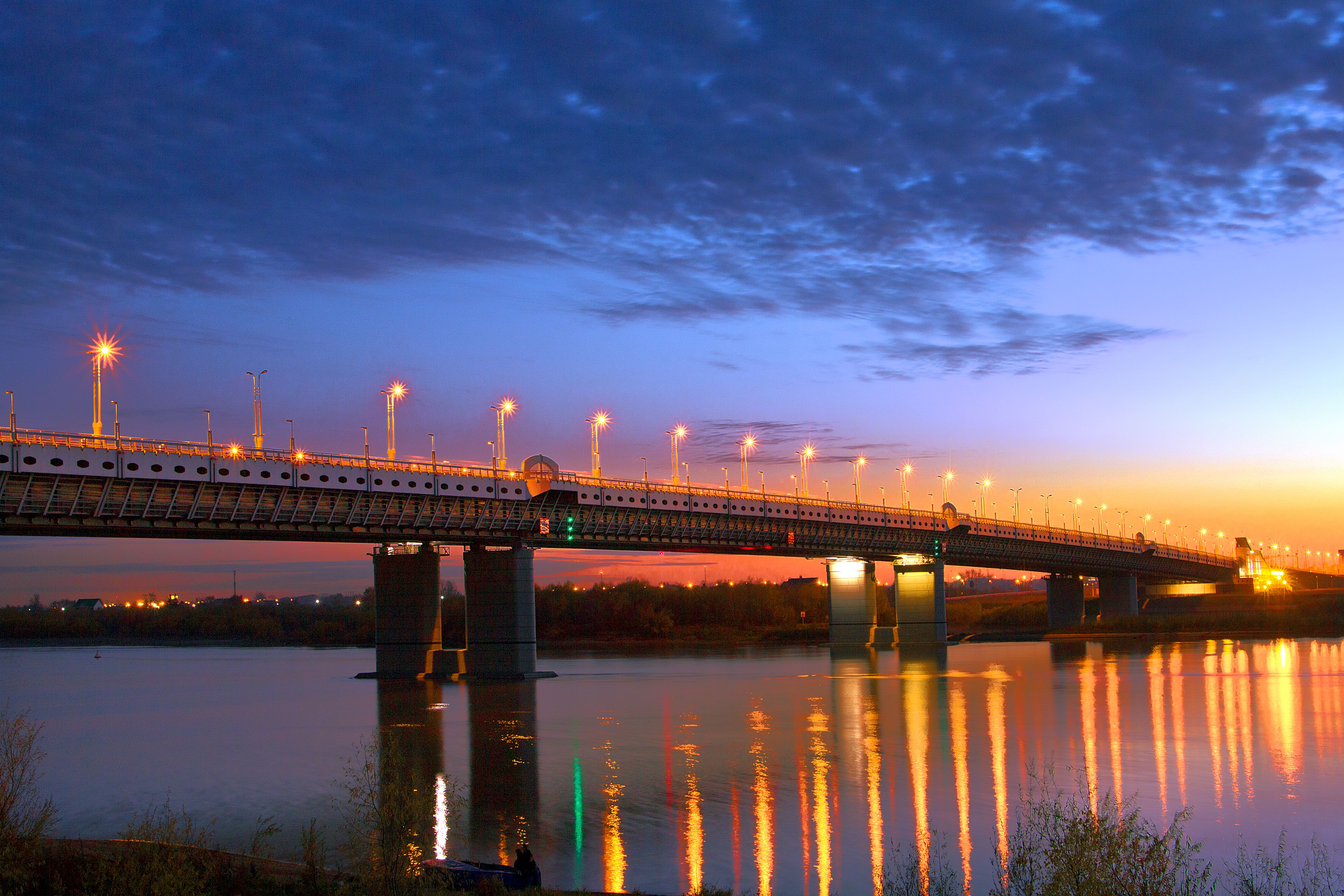 La struttura in acciaio e cemento si estende per 1150 metri sul fiume Irtysh, con corsie multiple per veicoli e passaggi pedonali.